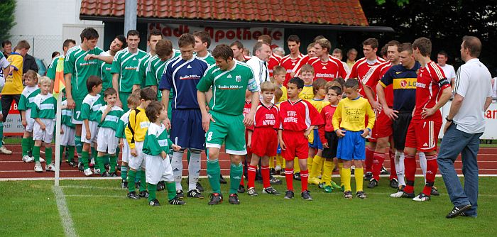 Im Nachhinein war es das Highlight des Spiels: Osterhofener G und F-Junioren beim Einlauf der Mannschaften! (Foto: Manuel Heindl)