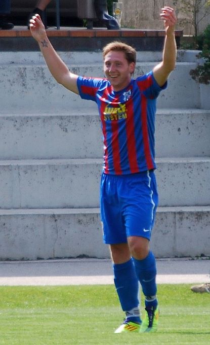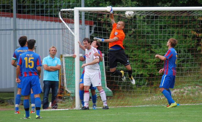 In der 18. Minute war es dann passiert. Wieder lief Schubert allein auf den Hainsbacher Goalie zu. Diesmal bediente er den besser postierten David Duraj (Bild rechts) der mühelos zur verdienten Gästeführung vollendete. In der Folge war der Titelmitfavorit aus Hainsbach besser und drängte auf den Ausgleich. Die Osterhofener Deckung wurde das eine oder andere Mal ausgespielt. Allein Andreas Huber hatte 2 mal die große Chance zum Ausgleich auf dem Fuß. Zuerst scheiterte Huber nach einer feinen Kombination an den glänzend aufgelegten Osterhofener TW Markus Wollinger. Fünf Minuten vor der Pause war es Martin Oslislo der auf der Linie einen Huber-Schuss klärte. Nach dem Wechsel machten die Hausherren weiter Druck. Hainsbach spielte geordneten Offensivfußball, zwingende Torchancen erspielten sie sich zunächst nicht. Der hellwache Wollinger war immer rechtzeitig zur Stelle und lieferte ein Klasse-Debut im Trikot der SpVgg Osterhofen-Altenmarkt ab. Nach einer Stunde befreiten sich die Gäste aus der Umklammerung und erspielten sich selbst wieder Möglichkeiten. In der 68. Minute geschah die wohl Spiel entscheidende Szene. TW Lohmann holte nachdem er von Duraj ausgespielt wurde den selbigen vor dem Strafraum von den Beinen und wurde vom souveränen Unparteiischen Walter Anetsberger des Feldes verwiesen. Trotz der Unterzahl spielten die Hausherren weiter nach vorne. Klare Torchancen ließen die hellwachen Gäste jedoch nicht zu und lauerten immer auf schnelle Gegenzüge. In der 80. Minute nutzte David Duraj eine dieser Kontermöglichkeiten zum vorentscheidenden 0:2. Die tapfer kämpfenden Gastgeber gaben nicht auf. Fünf Minuten vor dem Ende verwandelte Martin Landeck einen von Sebastian Pleintinger verursachten Handelfmeter zum Anschlusstreffer. Hainsbach versuchte in der Schlussphase noch alles, aber den durchaus verdienten Ausgleichtreffer verhinderte entweder die Osterhofener Abwehr oder TW Markus Wollinger. (fn)