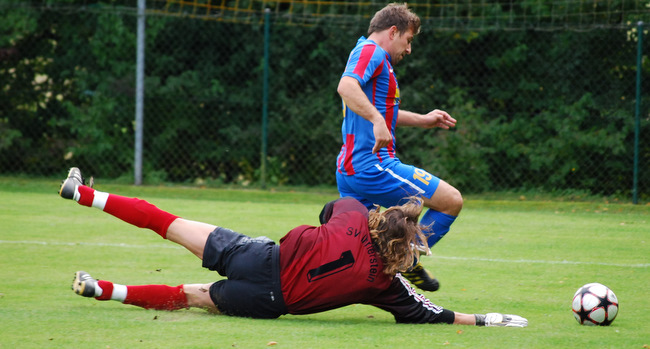 Trotz Überlegenheit über die gesamten 90 Minuten sprang im Kellerduell im beschaulichen Ihrlerstein nicht mehr als ein enttäuschendes 1:1-Remis heraus. Markus Tippelt, Thomas Saller, Thomas Fredl und Mehmet Filiz fehlten verletzt. Die Alternativen, vor allem im Defensivbereich, fehlten. Dennoch stand eine schlagkräftige Truppe auf dem Platz die sofort die Initiative übernahmen. Vom Anpfiff an bestimmten die Gäste aus Osterhofen die Partie und erspielten sich schnell hervorragende Möglichkeiten. Nach 5 Minuten kam David Duraj frei zum Schuß, verzog jedoch. Die Hausherren überliessen Osterhofen das Mittelfeld und zogen es vor auf eigenem Geläuf auf Konter zu spielen. Das gelang zunächst so gut wie gar nicht. Osterhofen war schneller und sicher im Kombinationsspiel. Nach 20 Minuten hatte David Duraj die dickste Chance als er allein auf TW Lanzl zulief. Der gute Hausherren-Keeper machte die Gelegenheit hervorragend zu nichte. Ihlerstein wartete mit hausbackenen Spiel auf. Mit langen Bällen überbrückten sie das Mittelfeld und kamen so zu Chancen. Der gefährliche Benjamin Lang kam in der 41. frei zu Schuß und besorgte die unverdiente Führung. Bis zur Pause war nun Ihrlerstein am Drücker und wollte die Schockstarre der Gäste nutzen. Zum Glück für die Gäste liessen die Ihrlersteiner eine große Möglichkeit zum 2:0 aus. Nach dem Wechsel erzielte Osterhofen sofort den Ausgleich. Ein langer Ball in der Strafraum der Ihlersteiner erreichte den sträflich freigelassenen Martin Oslislo der mühelos zum 1:1 vollstreckte. Osterhofen wollte nachlegen. Ein Freistoß von Stefan Zillinger erreichte den eingewechselten Matthias Schubert der mit einem Kopfball an TW Lanzl scheiterte. Die Partie wurde im weiteren Verlauf immer zerfahrener. Ihrlerstein stand tief und Osterhofen konnte sich die technischen Vorteile nicht zum Nutzen machen. Ab der 60. Minute hatten die Gäste einen Mann mehr auf dem Feld als Rengschtl mit glatt Rot vom Platz gestellt wurde. Die Gäste konnten sich dadurch keine Vorteile verschaffen. Chancen waren Mangelware. Der starke Benjamin Lang sorgte für Entlastung der Hausherren die sich tief in die eigene Hälfte zurückdrängen liessen. Am Ende verstanden es die Gäste nicht, gegen aufoperungsvoll kämpfende 10 Mann zu Tormöglichkeiten zu kommen. Aufgrund der starken ersten Hälfte wäre ein Auswärtssieg verdient gewesen. Die Lemberger-Elf brachte sich, wie so oft, durch mangelnde Chancenverwertung und Abwehrfehler um die verdienten 3 Punkte. (fn)