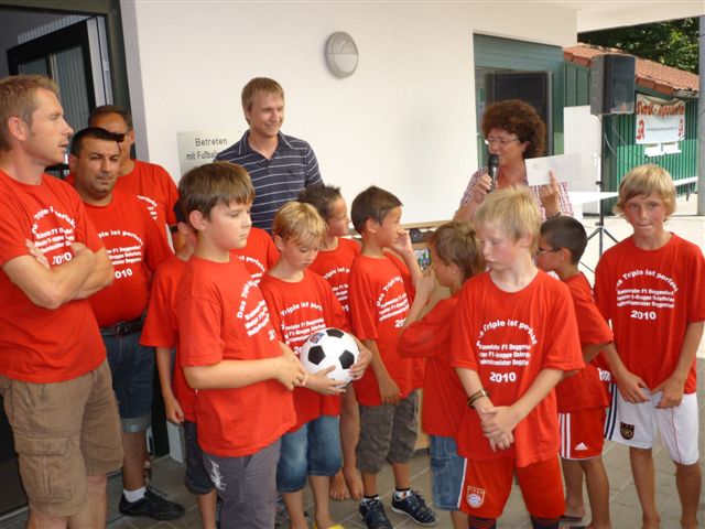 Ein Lederball mit dem Wappen der Stadt Osterhofen und ein Geldbetrag wurde jeweils den Spielführern von der SG Osterhofen/Aicha (C-Jugend) und der F-Jugend übergeben.