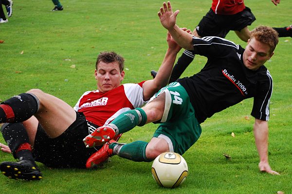 Den besseren Start erwischten die Hausherren. Matthias Bauer hatte in der 1. Minute mit einem Volleyschuss die Führung auf dem Fuß. Die frischeren Osterhofener hatten mit Distanzschüssen von Fredl und Tippelt zwei weitere gute Möglichkeiten. Nach 10 Minuten gaben die Gäste ein erstes Lebenszeichen ab. Ein Fernschuss von Artmann verfehlte jedoch das Gehäuse. Die Gäste fanden nun ins Spiel und der erste Angriffswirbel der Hausherren schwächte, wie der Regen, ab. In der 16. Minute hatten die Gäste Glück als sie sich einen abgefälschten Ball fast selber ins Netz bugsierten. Wie aus dem Nichts fiel dann die Führung für Plattling. Eine weite ungefährliche Flanke unterlief TW Winnerl. Marco Gigliola hatte keine Mühe den Ball über Linie zum 0:1 zu befördern. Nur zwei Minuten später legten die Gäste nach. Aus halbrechter Position schoss erneut Gigliola ein Freistoß leicht abgefälscht direkt ins Gehäuse. Der Aufsteiger war nun sichtlich geschockt und Plattling nutzte die Gunst der Stunde und erzielte den dritten Treffer innerhalb von 5 Minuten. Stefan Meier war mit einem strammen, unhaltbaren Schuss erfolgreich. Mit dieser deutlichen Führung im Rücken lies Plattling Ball und Gegner laufen. Die letzten 5 Minuten der ersten Hälfte gehörten wieder dem Gastgeber. Markus Tippelt schoss ein paar Mal gefährlich aufs Tor von Johannes Wildfeuer. In der 42. verwertete Matthias Schubert eine von Markus Tippelt geschlagene Freistoßflanke zum 1:3 Anschlusstreffer. Im zweiten Durchgang mühte sich Osterhofen redlich doch die sichere Plattlinger Deckung hielt den Gegner vom Strafraum fern. Die prima kombinierenden Isarstädter waren gefährlicher und erspielten sich einige gute Möglichkeiten. Nach einem Zweikampf verletzte sich Osterhofens Johannes Heindl schwer und musste ausgewechselt werden. In der 69. Minute fiel die Entscheidung. Andreas Rebl schloss eine feine Einzelleistung mit dem 1:4 ab. Osterhofen spielte trotz des hohen Rückstands weiter nach, vorn konnte aber keinen Druck auf die Hintermannschaft der Gäste ausüben. (fn)